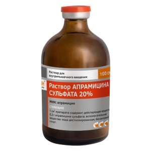 Действующее вещество (подробно) 1 см3 препарата содержит действующее вещество: апрамицина сульфат 200 мг.