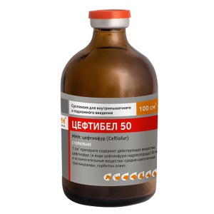Цефтиобел 50 представляет собой суспензию от белого до светло-желтого цвета. Допускается расслоение при хранении, исчезающее при встряхивании.