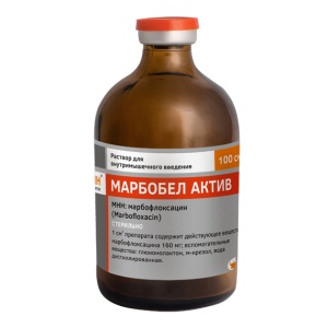 Действующее вещество (подробно) 1 см3 препарата содержит действующее вещество: марбофлоксацина 160 мг; вспомогательные вещества глюконолактон, м-крезол и вода дистиллированная (вода для инъекций).