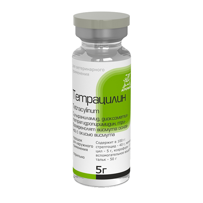 Тетрацилин выпускают расфасованным по 5 г во флаконы из нейтрального стекла, герметично укупоренные резиновыми пробками, укрепленными алюминиевыми колпачками. Каждая единица фасовки сопровождается инструкцией по применению.