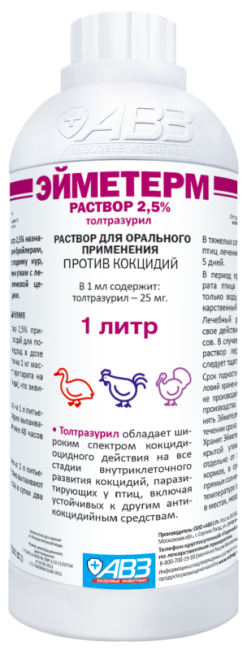 "Эйметерм" раствор 2,5% относится к антикокцидийным препаратам группы триазинтриона.