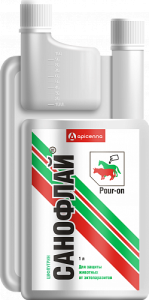 Санофлай применяют крупному рогатому скоту и лошадям с помощью дозирующего устройства, нанося на кожу спины вдоль позвоночника от холки до крестца из расчета 0,3 мл на 10 кг массы животного.