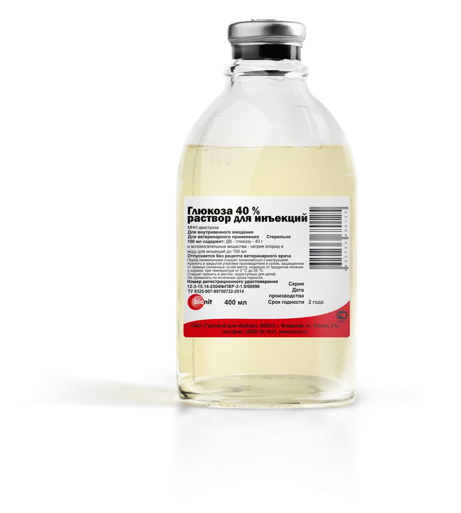 по применению Глюкозы 5%, 10%, 25%, 40% раствора для инъекций при обезвоживании и интоксикации организма животных