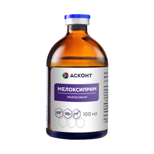 Действующее вещество (подробно) в 1 мл Мелоксиприма в качестве действующего вещества содержится 20,0 мг мелоксикама и вспомогательные вещества: меглюмин, глицин, трилон Б, нипагин, этанол, полиэтиленгликоль, моноэтаноламин, вода для инъекций.