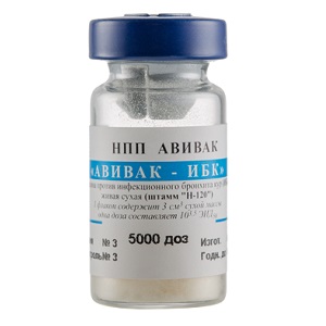 Эта вакцина против инфекционного бронхита кур штамма «Н-120» вируса, который относится к серотипу Массачусетс. Если посмотреть на внешний вид вакцины, то она представляет собой однородное сухое вещество, которое имеет пористую структуру и окрашено в светло-желтый или светло-коричневый цвет. Эта вакцина легко растворяется в воде или в физиологическом растворе, не образуя при этом хлопьев или осадка.