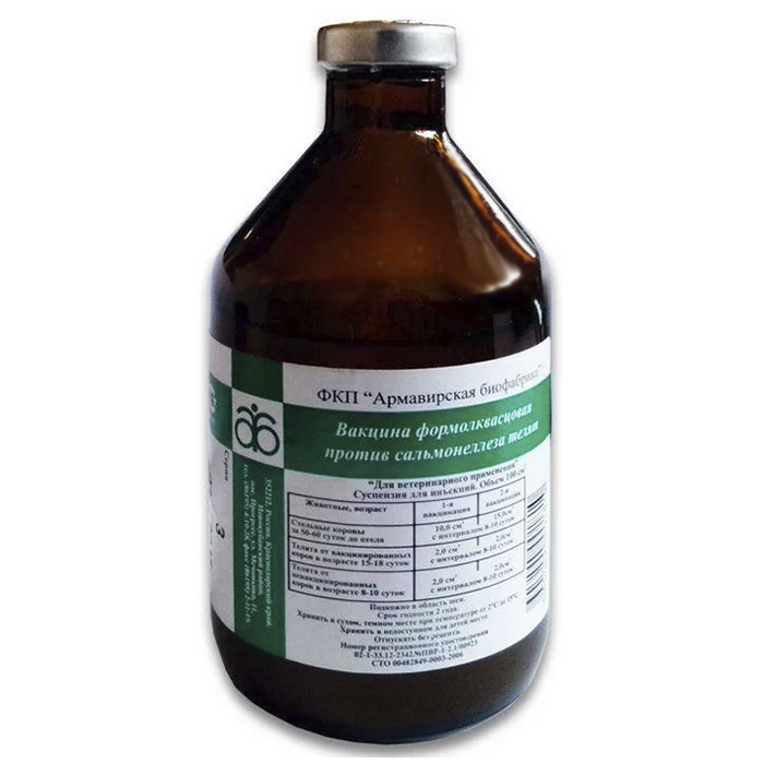Формолквасцовая вакцина предназначена для имуннизации телят и стельных коров в хозяйствах, неблагополучных по сальмонеллезу.