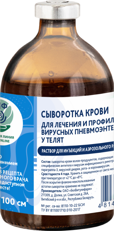 Сыворотка крови для лечения и проф-ки пневмоэнтеритов у телят 100мл "БелВитунифарм"