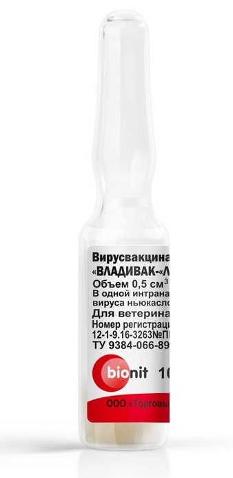 Международное непатентованное наименование: Вирусвакцина против ньюкаслской болезни «ВЛАДИВАК - «ЛА-СОТА» живая сухая.