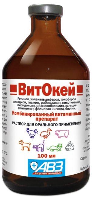 "ВитОкей" относится к комбинированным витаминным препаратам. Активные вещества препарата оказывают синергидное действие на организм животных и птиц, выражающееся в нормализации обмена веществ, профилактике гиповитаминозов и заболеваний, развивающихся на их фоне.